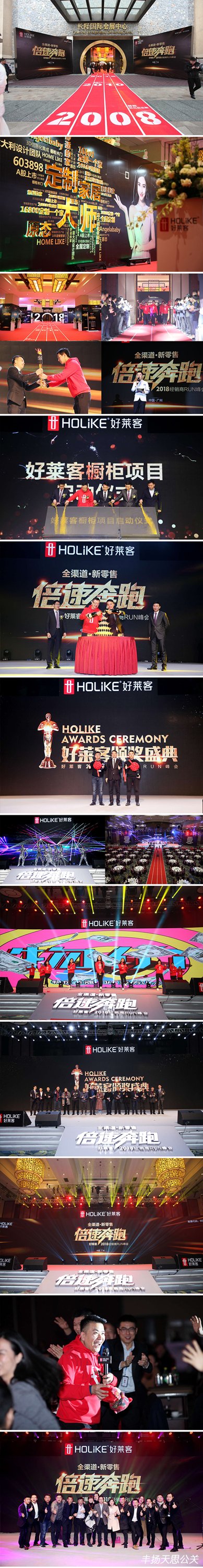 2018年1月30日,由廣東豐揚天思文化傳播有限公司策劃執行的好萊客“全渠道·新零售 倍速奔跑”2018年好萊客經銷商RUN峰會在廣州長隆國際會議中心盛大舉行。廣州好萊客創意家居股份有限公司董事長沈漢標先生、總裁周懿先生等全部高層領導攜來自全國各地的經銷商們歡聚一堂、共襄盛舉,謀劃2018新戰略新發展。