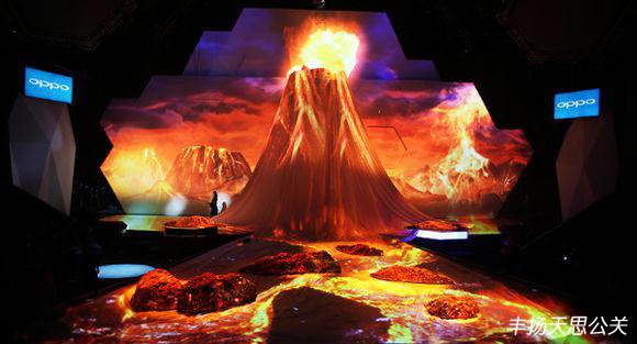 高噴的火焰、流淌的巖漿,濃烈的紅色與火光,異域風情撲面而來。
