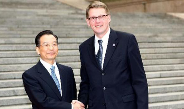 國務(wù)院總理溫家寶25日在人民大會堂與芬蘭總理萬哈寧舉行會談。
