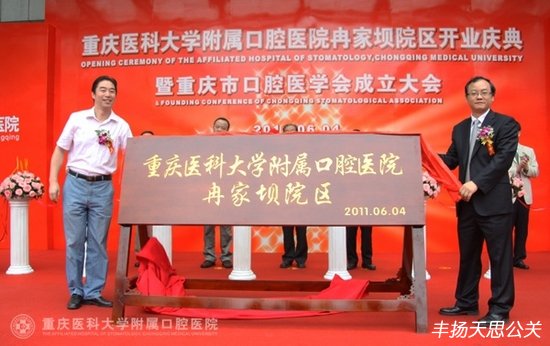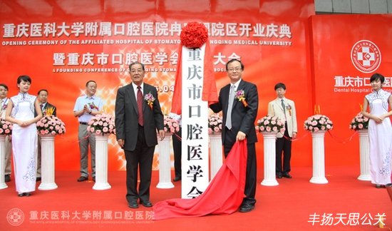 2011年6月4日上午,重慶醫(yī)科大學(xué)附屬口腔醫(yī)院冉家壩院區(qū)開業(yè)慶典暨重慶市口腔醫(yī)學(xué)會(huì)成立大會(huì)在冉家壩院區(qū)隆重舉行。重慶市政府副市長(zhǎng)吳剛、中華口腔醫(yī)學(xué)會(huì)會(huì)長(zhǎng)王興、重慶市衛(wèi)生局黨組書記夏永鵬、重慶醫(yī)科大學(xué)黨委書記吳小翎等領(lǐng)導(dǎo)出席了開業(yè)儀式并剪彩。參加開業(yè)慶典暨重慶市口腔醫(yī)學(xué)會(huì)成立大會(huì)的嘉賓還有中華口腔醫(yī)學(xué)會(huì)王渤秘書長(zhǎng)、北京大學(xué)口腔醫(yī)院張祖燕副書記、四川大學(xué)華西口腔醫(yī)院趙志河副院長(zhǎng)、首都醫(yī)科大學(xué)王松靈副校長(zhǎng)、武漢大學(xué)口腔醫(yī)學(xué)院樊明文院長(zhǎng)等全國(guó)各大口腔醫(yī)院和醫(yī)學(xué)院的院長(zhǎng)、專家、知名學(xué)者和院老專家、職工代表共200余人。重慶市衛(wèi)生局局長(zhǎng)屈謙主持了開業(yè)典禮。