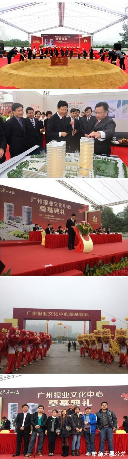 國(guó)際領(lǐng)先的全媒體發(fā)展平臺(tái)、彰顯嶺南特色的文化新地標(biāo)——廣州日?qǐng)?bào)報(bào)業(yè)文化中心今天舉行隆重的奠基典禮。廣州報(bào)業(yè)文化中心是廣州市重點(diǎn)項(xiàng)目,地處琶洲會(huì)展總部功能區(qū)的西北濱水地帶,通過(guò)國(guó)際設(shè)計(jì)競(jìng)賽,最后確定德國(guó)gmp建筑設(shè)計(jì)有限公司和廣州市設(shè)計(jì)院聯(lián)合體的方案為實(shí)施方案,項(xiàng)目總投資約17.6億元人民幣(含土地成本),預(yù)計(jì)在2015年投入使用,出席的嘉賓有廣州市委書(shū)記萬(wàn)慶良同志,廣州市長(zhǎng)陳建華同志,以及市、區(qū)、報(bào)業(yè)領(lǐng)導(dǎo)等。——廣州豐揚(yáng)天思活動(dòng)策劃公司事業(yè)一部策劃執(zhí)行