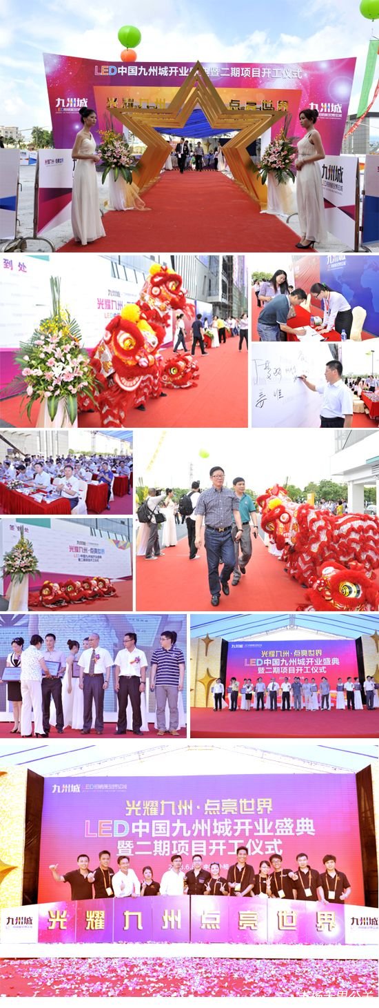 6月8日上午,位于中山小欖鎮的LED中國九州城開業盛典暨二期項目開工儀式隆重舉行,現場舞獅助陣,禮炮連天,氣氛格外熱烈。