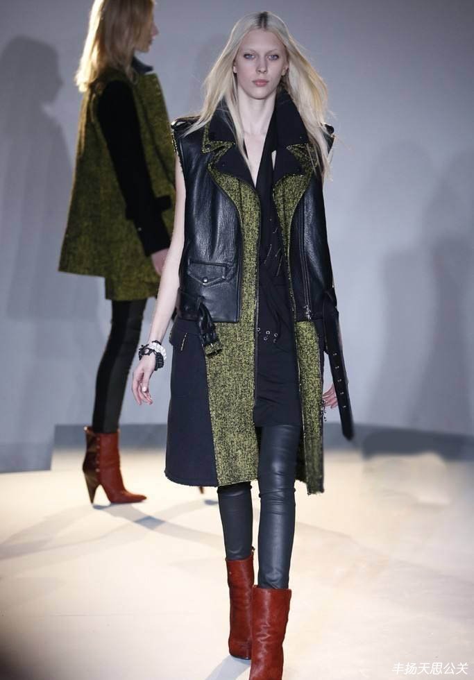2013紐約秋冬時(shí)裝周Edun RTW。Edun新任創(chuàng)意總監(jiān)Danielle Sherman到任前,Edun 2013年秋季女裝秀場(chǎng)依然由連任6季的設(shè)計(jì)師Sharon Wachoub掌舵。設(shè)計(jì)師從亞文化獲得創(chuàng)作靈感,摩登派、機(jī)車族、垃圾搖滾等年輕化經(jīng)典元素統(tǒng)統(tǒng)都可以在Edun本季找尋。Sharon Wachoub在發(fā)布會(huì)結(jié)束后談及“我并不想用朋克這個(gè)詞”,可以說(shuō)這是一場(chǎng)將各種元素混合的一季。90年代的方格legging,80年代的尖頭靴、機(jī) 車夾克,但不得不說(shuō)整體效果卻很協(xié)調(diào)。